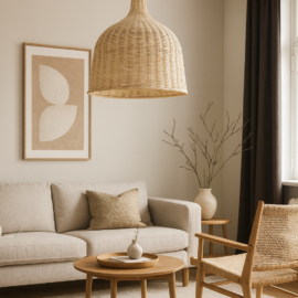 LAMPARA DECORATIVA DE RATTAN TIPO CANASTICA 45×45 cm suspendida