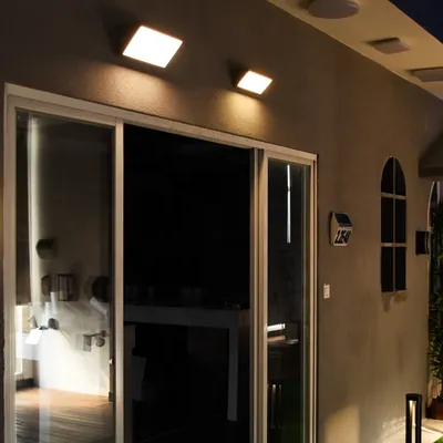 Aplique LED de pared exterior, 12W, luz cálida 3000K. Fabricado en policarbonato (PC), color negro, protección IP65. Dimensiones 265x120x81mm.