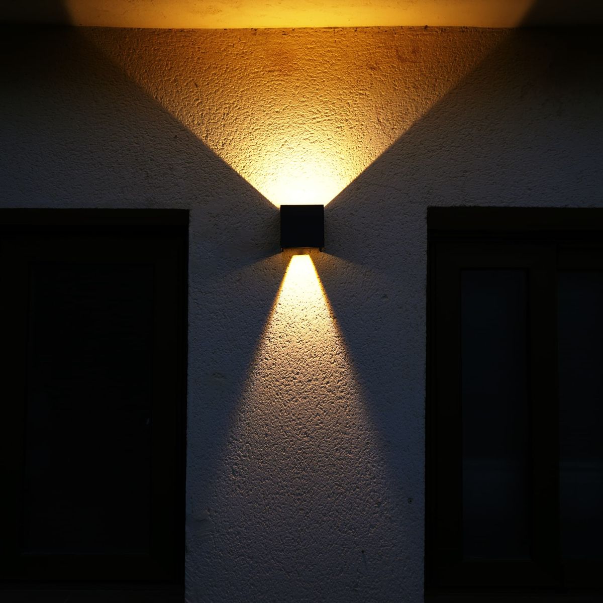 Resistente a la intemperie: Esta lámpara LED de pared para exteriores está fabricada completamente en policarbonato. Este plástico económico es resistente a la corrosión, al polvo y al agua. Además, nuestra lámpara LED de pared para exteriores cumple con el nivel de protección IP65, lo que la hace perfecta para entornos difíciles como la playa y sótanos.