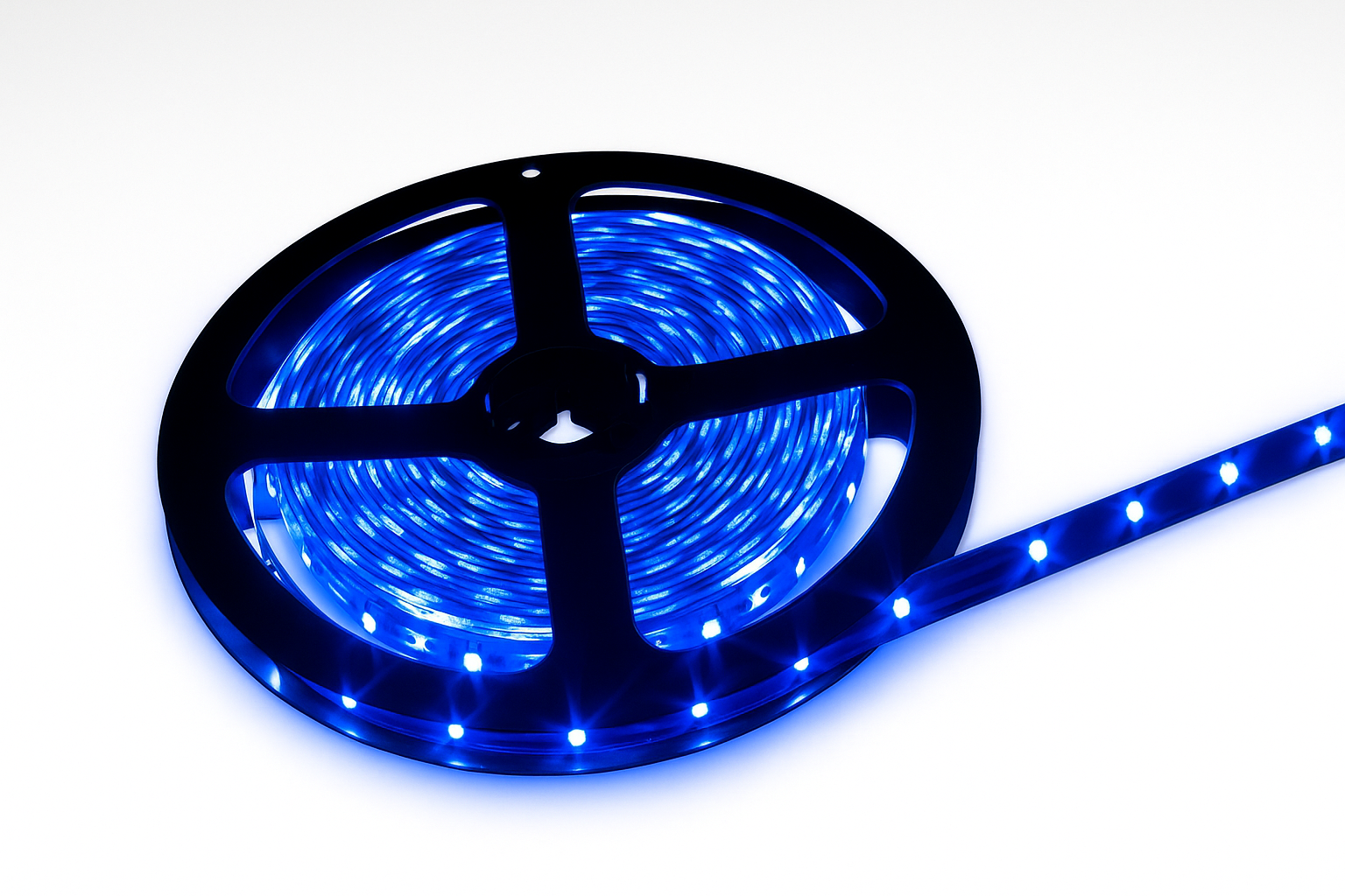 Cinta LED flexible de color azul. 9.6W/m (SMD 3528). Protección IP20 (uso interior). Ideal para decoración.