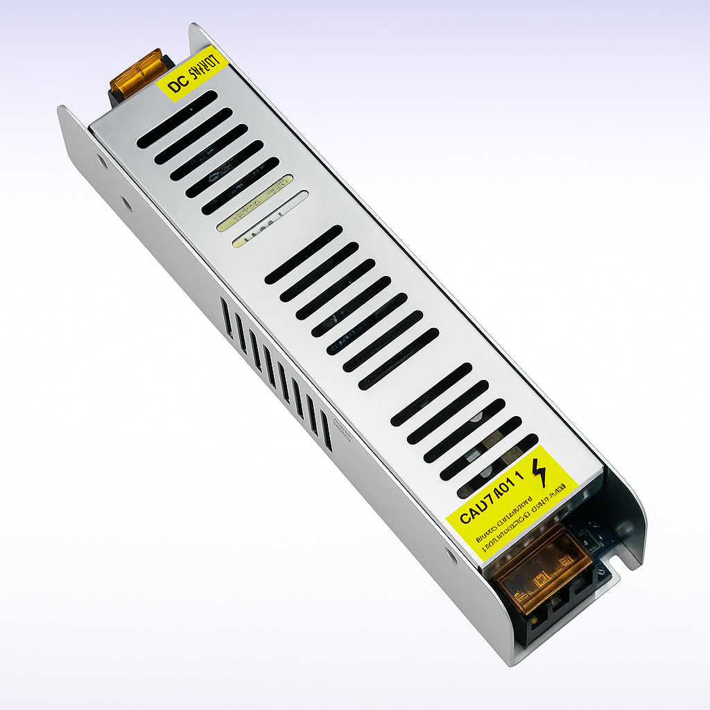 Driver LED dimmable (0-10V y Triac) de 150W y 12V. Diseño extraplano (195x55x20mm). Voltaje de entrada 100-130V, IP20. Marca Elecluz.