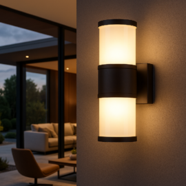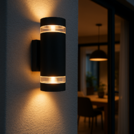 Aplique E-27 negro Y-B5011B 90*280mm 2*E-27 IP-65 tubular con difusores acrílicos