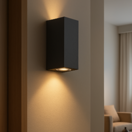 Aplique GU-10 BK TS127SA-2 Negro UP-DOWN 80×152 cuadrado EVOLIGHT IP-65 Alu